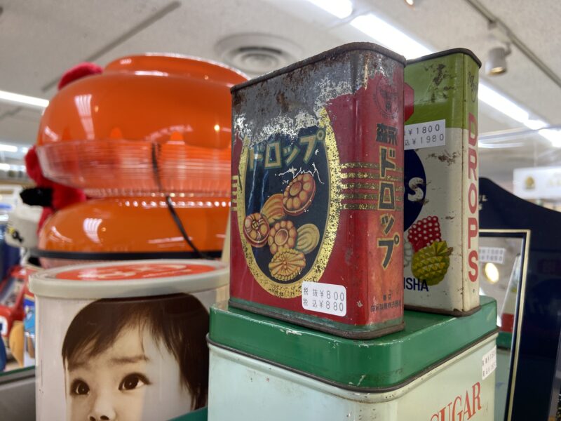 懐かしの卓上のドロップ缶などの雑貨も