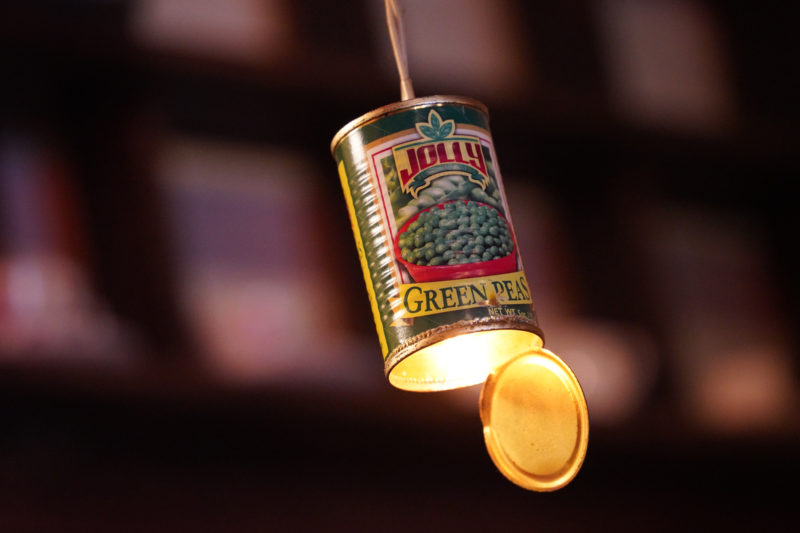 空き缶を使った味わいのある照明。一つひとつの小物に何気なく目を奪われる。店主のセンスがうかがえる