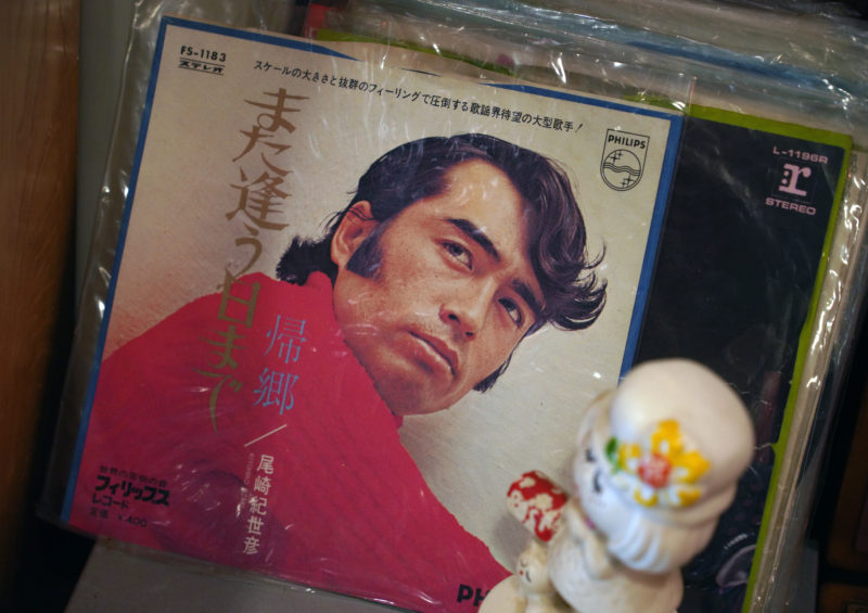 尾崎紀世彦の「また逢う日まで」のEPレコード。思わぬレトロアイテムに即座にシャッターを切ったカメラマン。それに呼応した編集者も迷わず採用した一枚