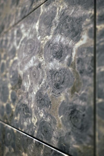 (上)(下)藻の化石が固まったコレニア大理石。遠くから見る