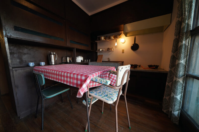 当時の人にとっては夢にまで見た憧れのダイニングキッチン。戸棚は作りつけ。この風景は、明治にはもちろん大正にも昭和初期にもなかった風景。だんだん今の生活に近づいてきていることがわかる展示だ