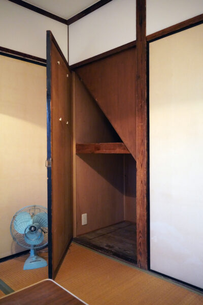 メゾネットタイプの階段の下の物入れ。斜