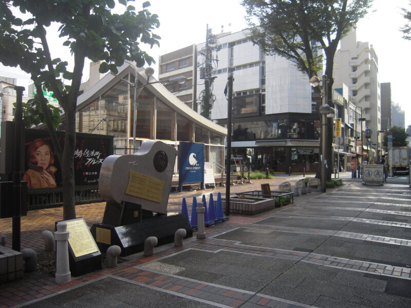 横浜・伊勢佐木町にある青江三奈の歌碑(左)。グランドピアノをかたどっていて、スイッチを押すと「伊勢佐木町ブルース」が1分間流れる
