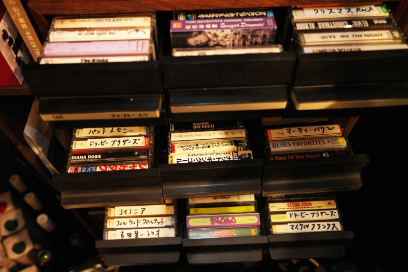 「60年代から80年代ぐらいにかけて、僕たちはほぼタイムリーでカセットテープと『一緒に過ごしてきた』という一体感があります。だから実体験として、語れる部分もたくさんあるんですよね」。今では、売ってる店もほとんど見ない。「この形のバーは、もしかしたら、日本初かもしれませんね」とキヨトさんは、目を輝かせる。「ショップだと、物を買っていただいたら基本的にはそこで終わってしまいます。でもバーなら、カウンターで会話ができるし、それが広がって、コミュニティーになっていく可能性も十分にあります」