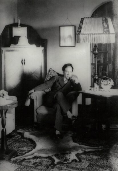「華宵御殿」の舶来のインテリアに囲まれた居間にて