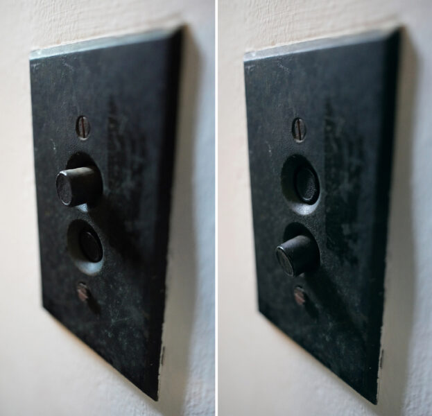 プッシュ式の電灯のスイッチ。取材で訪れたフランス人も「これおばあちゃんの家にあった」と喜んでいたという