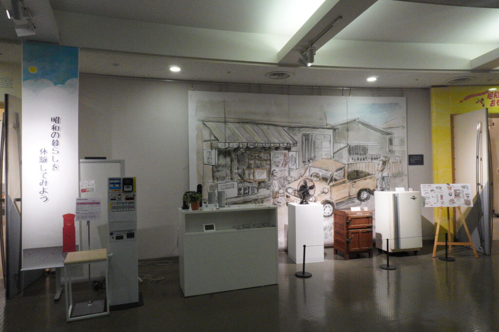 昭和の暮らしを体験できるコーナー。扇風機や冷蔵庫などの展示も