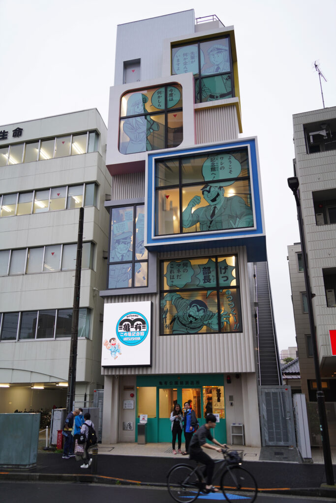 マンガのコマ割りをイメージした外観。両さんが考えたにしては、ずいぶんおしゃれでモダンだという印象だ