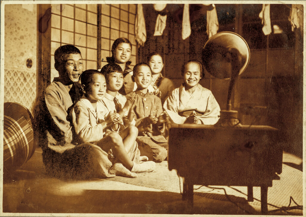 ラジオで一家団欒=日本のラジオ放送は大正14(1925)年に開始された。昭和6(1931)年9月の満州事変の報道の頃からは、受信機が値下がりし、日本放送協会が様々なプログラムを提供したこともあり普及が進む。昭和10年末には聴取者は230万人を超えたという。写っているのは初期の高級真空管式ラジオ受信機で、屋外にアンテナを張る必要もあった。この写真は演出写真だろうが自然でよい写真だ。(昭和11年7月2日、同盟通信社)。※写真はいずれも石黒敬章氏解説